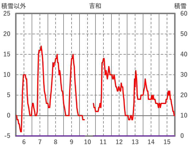 | 日 | 時 | 気温 | 降水 | 風向/風速 | 日照 | 積雪 | 降雪 |