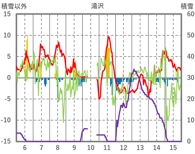 | 日 | 時 | 気温 | 降水 | 風向/風速 | 日照 | 積雪 | 降雪 |