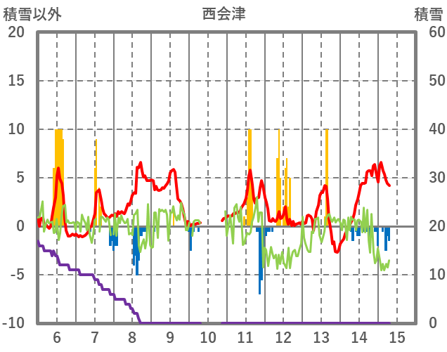 | 15 | 6 | 4.4 | 1 | WNW/4.2 | 0 | 0 | |