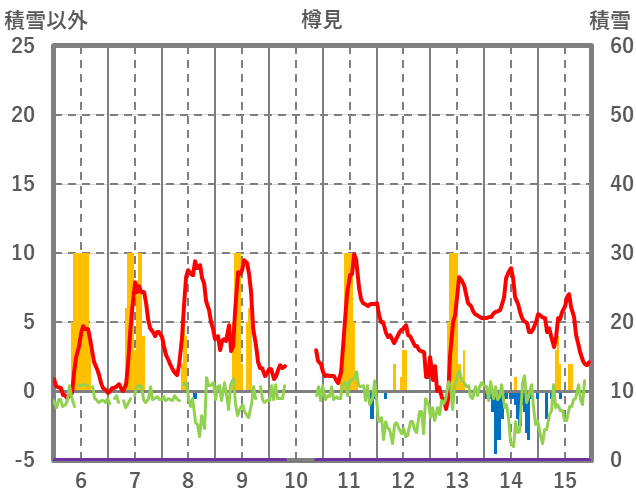 | 日 | 時 | 気温 | 降水 | 風向/風速 | 日照 | 積雪 | 降雪 |