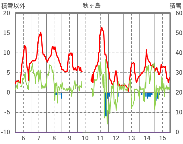| 日 | 時 | 気温 | 降水 | 風向/風速 | 日照 | 積雪 | 降雪 |