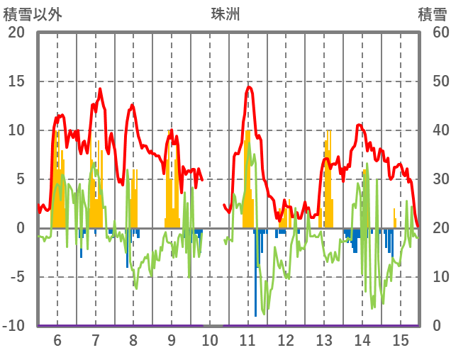 | 日 | 時 | 気温 | 降水 | 風向/風速 | 日照 | 積雪 | 降雪 |
