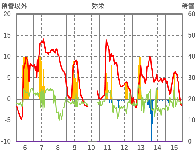 | 日 | 時 | 気温 | 降水 | 風向/風速 | 日照 | 積雪 | 降雪 |