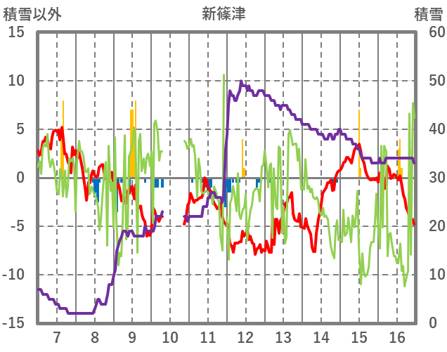 | 日 | 時 | 気温 | 降水 | 風向/風速 | 日照 | 積雪 | 降雪 |