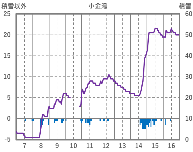 | 日 | 時 | 気温 | 降水 | 風向/風速 | 日照 | 積雪 | 降雪 |