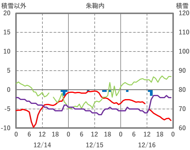 | 日 | 時 | 気温 | 降水 | 風向/風速 | 日照 | 積雪 | 降雪 |