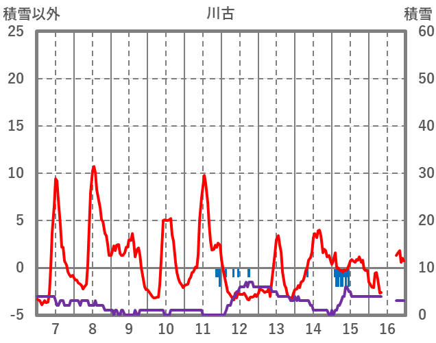 | 日 | 時 | 気温 | 降水 | 風向/風速 | 日照 | 積雪 | 降雪 |