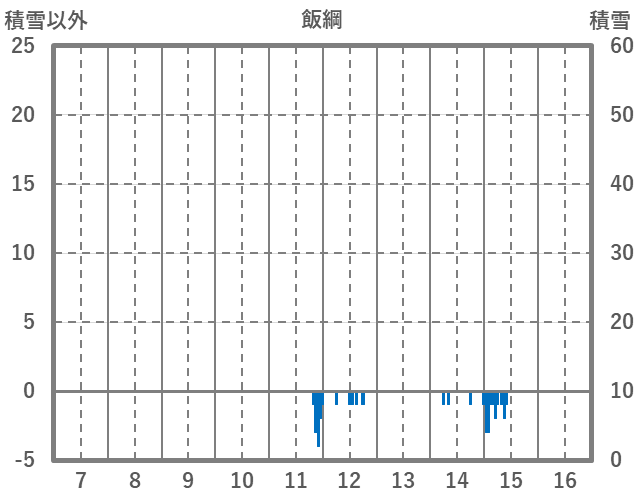 | 日 | 時 | 気温 | 降水 | 風向/風速 | 日照 | 積雪 | 降雪 |