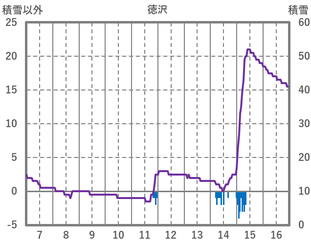 | 日 | 時 | 気温 | 降水 | 風向/風速 | 日照 | 積雪 | 降雪 |