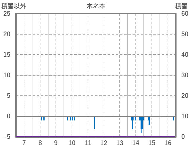 | 日 | 時 | 気温 | 降水 | 風向/風速 | 日照 | 積雪 | 降雪 |