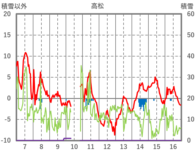 | 日 | 時 | 気温 | 降水 | 風向/風速 | 日照 | 積雪 | 降雪 |