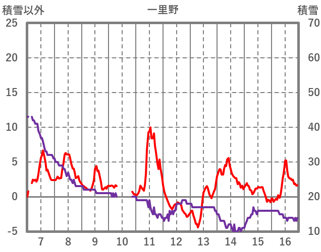 | 日 | 時 | 気温 | 降水 | 風向/風速 | 日照 | 積雪 | 降雪 |