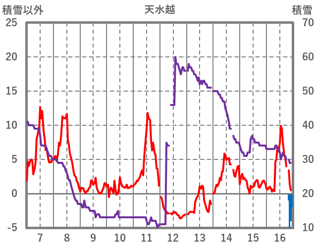 | 日 | 時 | 気温 | 降水 | 風向/風速 | 日照 | 積雪 | 降雪 |