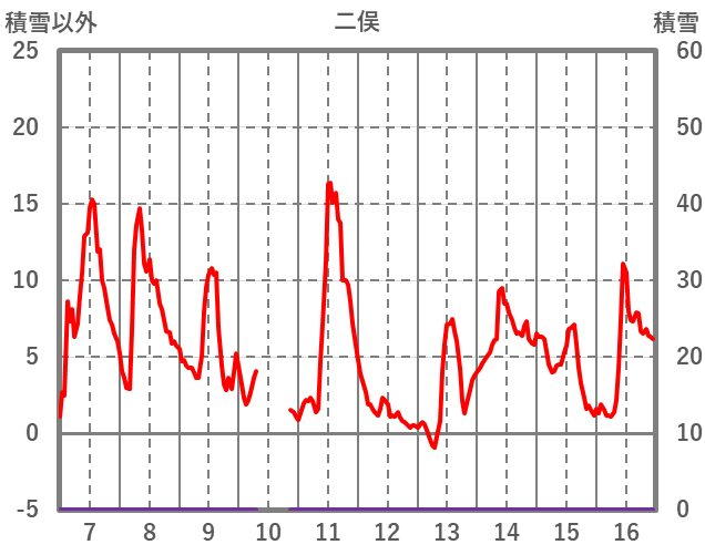 | 日 | 時 | 気温 | 降水 | 風向/風速 | 日照 | 積雪 | 降雪 |