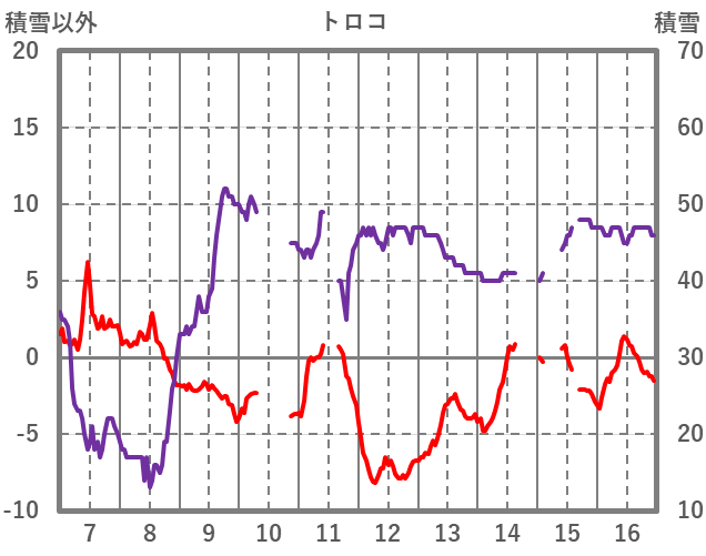 | 日 | 時 | 気温 | 降水 | 風向/風速 | 日照 | 積雪 | 降雪 |