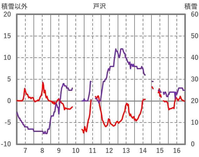 | 日 | 時 | 気温 | 降水 | 風向/風速 | 日照 | 積雪 | 降雪 |
