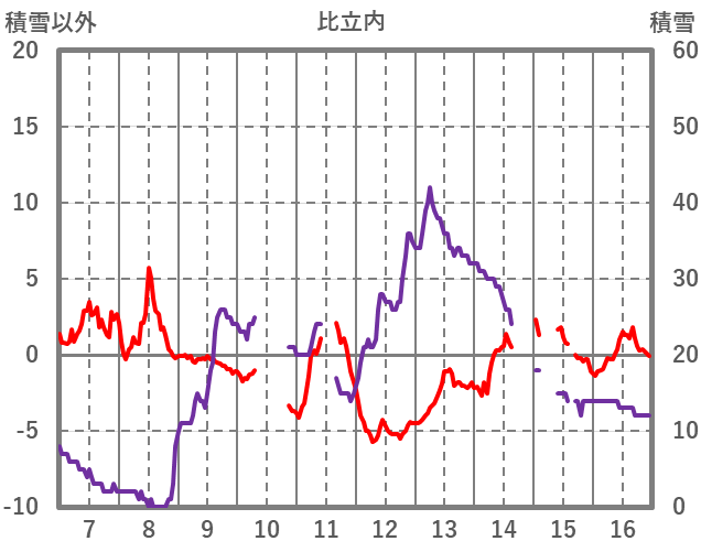 | 日 | 時 | 気温 | 降水 | 風向/風速 | 日照 | 積雪 | 降雪 |