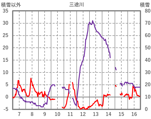 | 日 | 時 | 気温 | 降水 | 風向/風速 | 日照 | 積雪 | 降雪 |