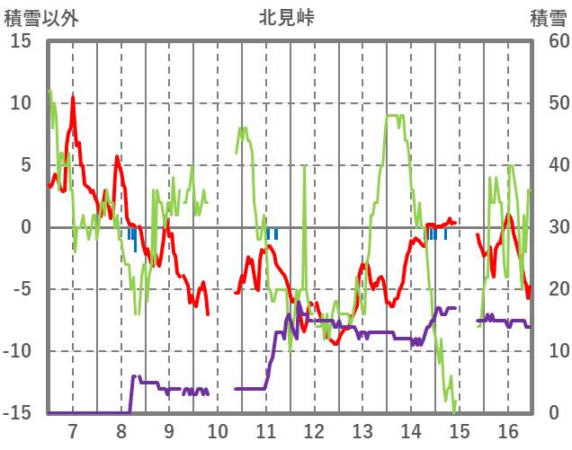 | 日 | 時 | 気温 | 降水 | 風向/風速 | 日照 | 積雪 | 降雪 |