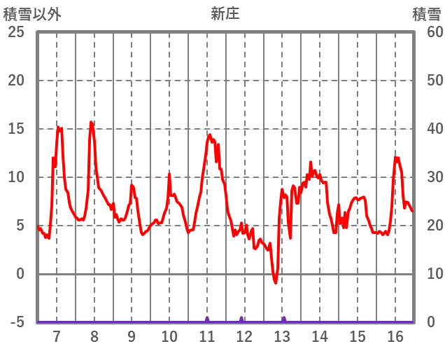 | 日 | 時 | 気温 | 降水 | 風向/風速 | 日照 | 積雪 | 降雪 |