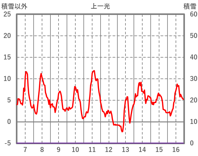 | 日 | 時 | 気温 | 降水 | 風向/風速 | 日照 | 積雪 | 降雪 |