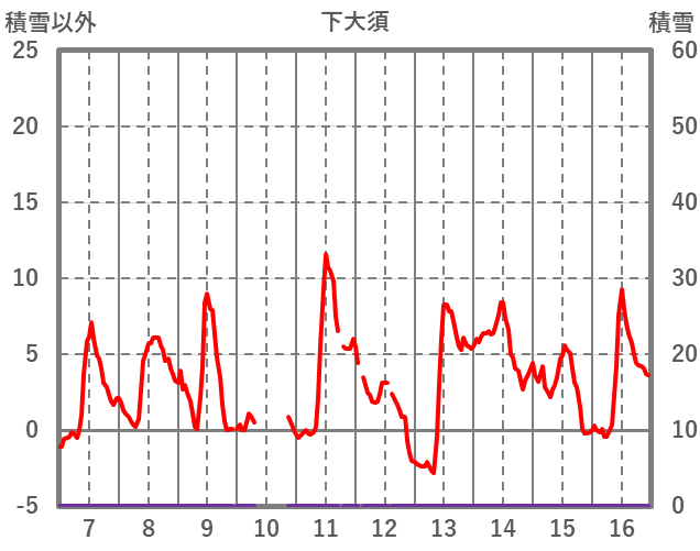| 日 | 時 | 気温 | 降水 | 風向/風速 | 日照 | 積雪 | 降雪 |