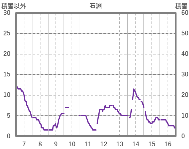 | 日 | 時 | 気温 | 降水 | 風向/風速 | 日照 | 積雪 | 降雪 |