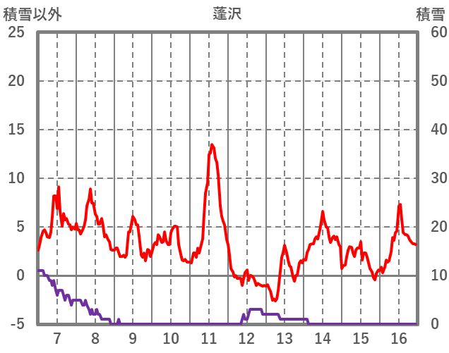 | 日 | 時 | 気温 | 降水 | 風向/風速 | 日照 | 積雪 | 降雪 |