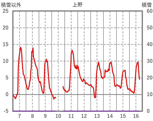 | 日 | 時 | 気温 | 降水 | 風向/風速 | 日照 | 積雪 | 降雪 |