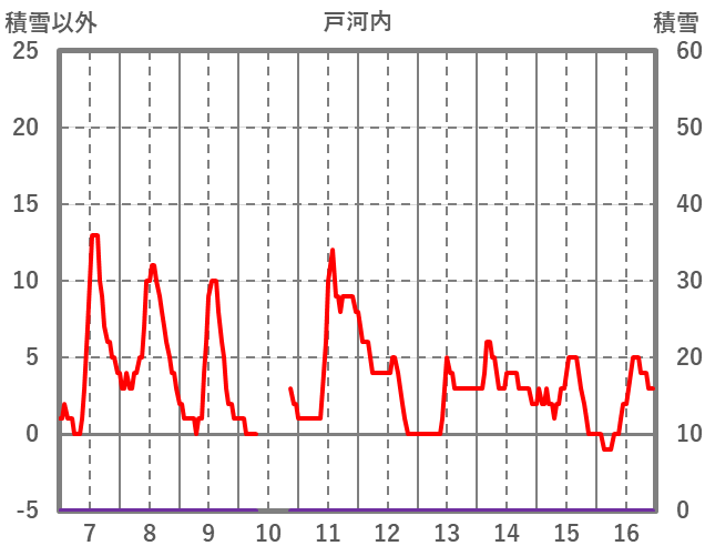 | 日 | 時 | 気温 | 降水 | 風向/風速 | 日照 | 積雪 | 降雪 |