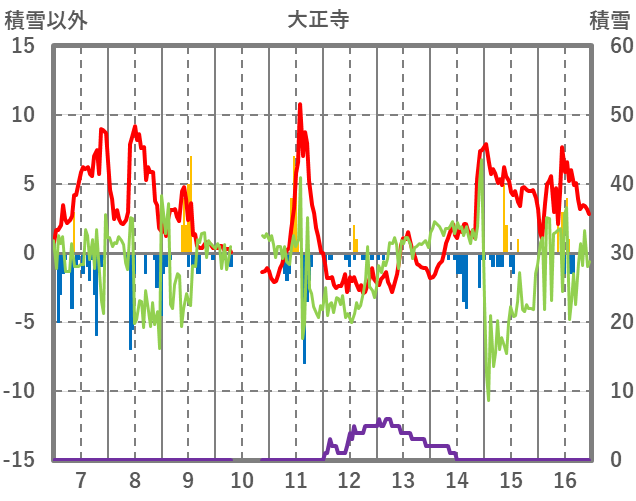 | 日 | 時 | 気温 | 降水 | 風向/風速 | 日照 | 積雪 | 降雪 |
