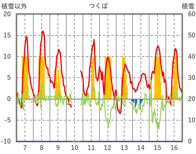 | 日 | 時 | 気温 | 降水 | 風向/風速 | 日照 | 積雪 | 降雪 |