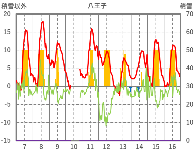 | 日 | 時 | 気温 | 降水 | 風向/風速 | 日照 | 積雪 | 降雪 |