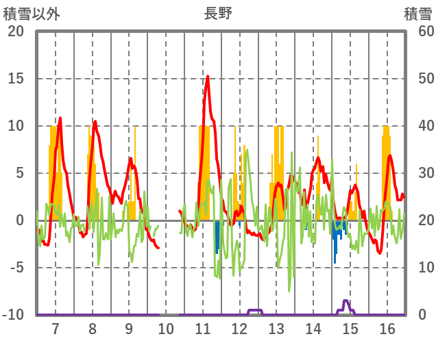 | 日 | 時 | 気温 | 降水 | 風向/風速 | 日照 | 積雪 | 降雪 |