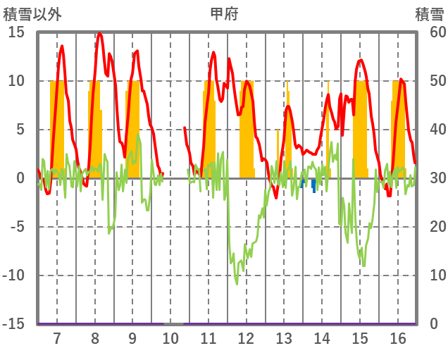 | 日 | 時 | 気温 | 降水 | 風向/風速 | 日照 | 積雪 | 降雪 |