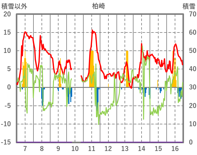 | 日 | 時 | 気温 | 降水 | 風向/風速 | 日照 | 積雪 | 降雪 |