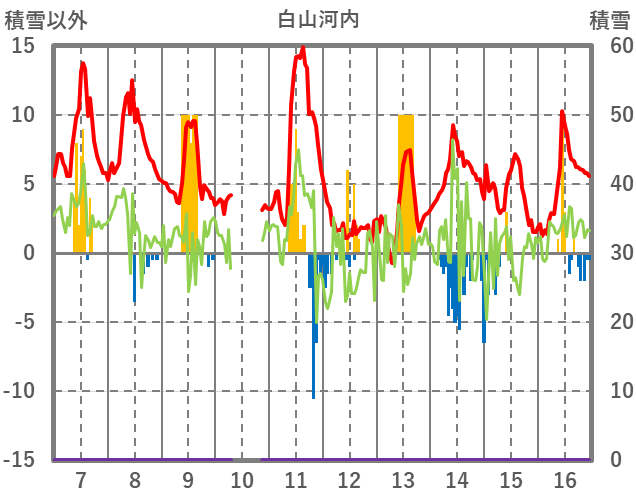 | 日 | 時 | 気温 | 降水 | 風向/風速 | 日照 | 積雪 | 降雪 |