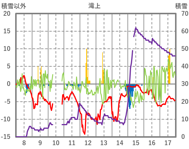 | 日 | 時 | 気温 | 降水 | 風向/風速 | 日照 | 積雪 | 降雪 |