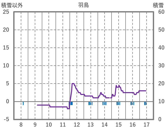 | 日 | 時 | 気温 | 降水 | 風向/風速 | 日照 | 積雪 | 降雪 |