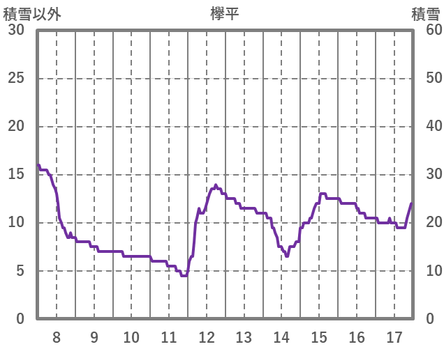 | 日 | 時 | 気温 | 降水 | 風向/風速 | 日照 | 積雪 | 降雪 |