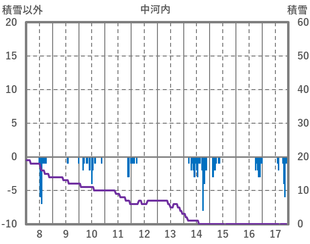 | 日 | 時 | 気温 | 降水 | 風向/風速 | 日照 | 積雪 | 降雪 |
