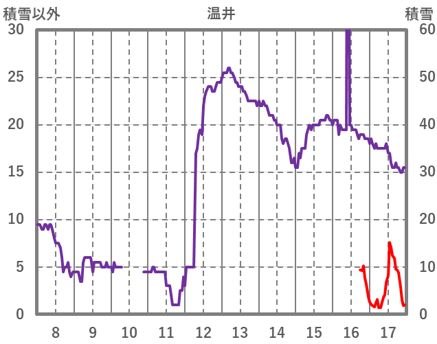 | 日 | 時 | 気温 | 降水 | 風向/風速 | 日照 | 積雪 | 降雪 |