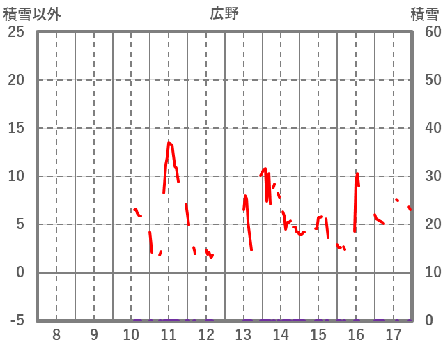 | 日 | 時 | 気温 | 降水 | 風向/風速 | 日照 | 積雪 | 降雪 |