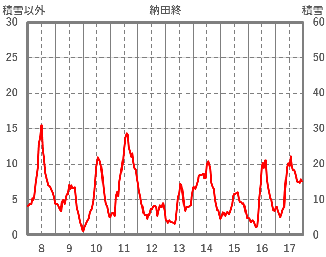 | 日 | 時 | 気温 | 降水 | 風向/風速 | 日照 | 積雪 | 降雪 |