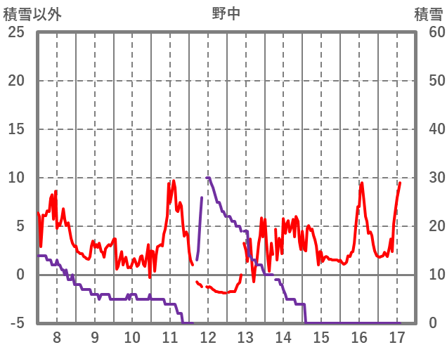 | 日 | 時 | 気温 | 降水 | 風向/風速 | 日照 | 積雪 | 降雪 |