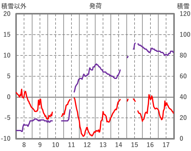 | 日 | 時 | 気温 | 降水 | 風向/風速 | 日照 | 積雪 | 降雪 |