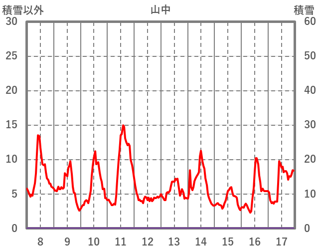 | 日 | 時 | 気温 | 降水 | 風向/風速 | 日照 | 積雪 | 降雪 |