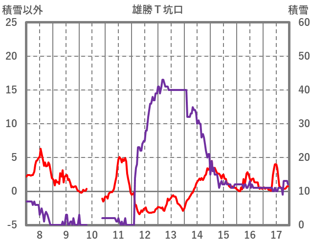 | 日 | 時 | 気温 | 降水 | 風向/風速 | 日照 | 積雪 | 降雪 |