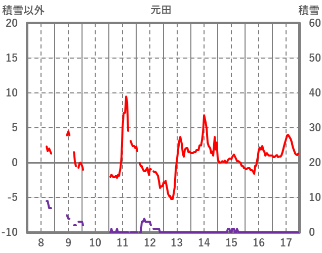 | 日 | 時 | 気温 | 降水 | 風向/風速 | 日照 | 積雪 | 降雪 |