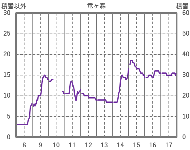| 日 | 時 | 気温 | 降水 | 風向/風速 | 日照 | 積雪 | 降雪 |
